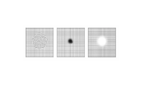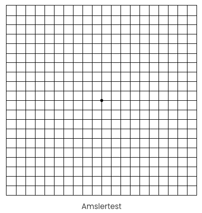 Amslertestet använder ett enkelt rutmönster med en prick i mitten. Du ska titta på pricken med ett öga i taget. Om du upplever några av ovanstående symtom under testet så bör du boka din tid för en ögonundersökning.